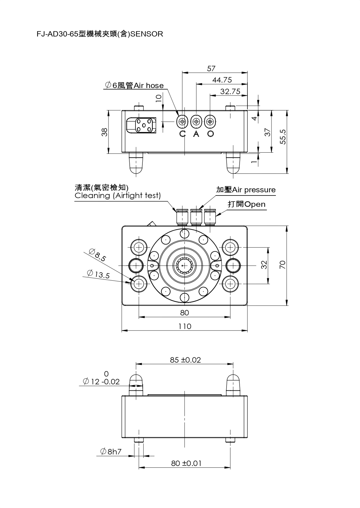 · 內建Sensor:可檢測是否有夾取及鬆開